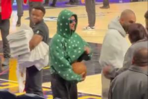 🤣亿万富翁偷篮球?贾斯汀·比伯在湖人主场试图顺走篮球未遂